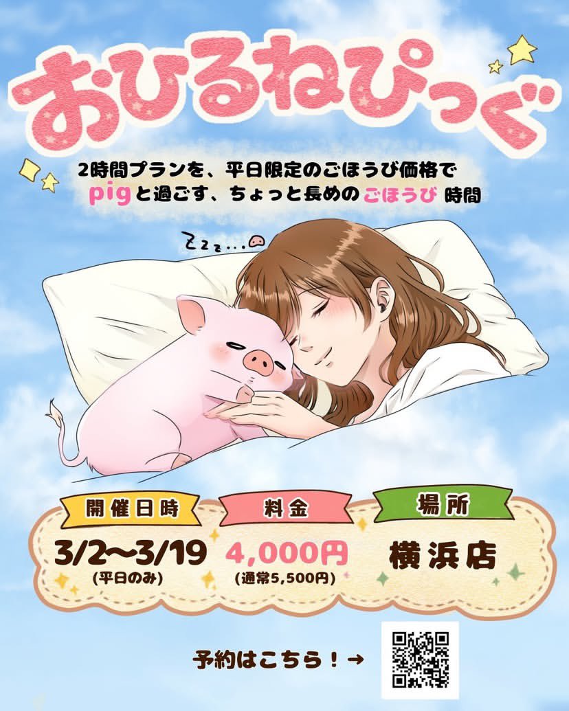 pignic cafe 横浜店にて、平日限定の特別イベント「おひるねぴっぐ」を開催します。