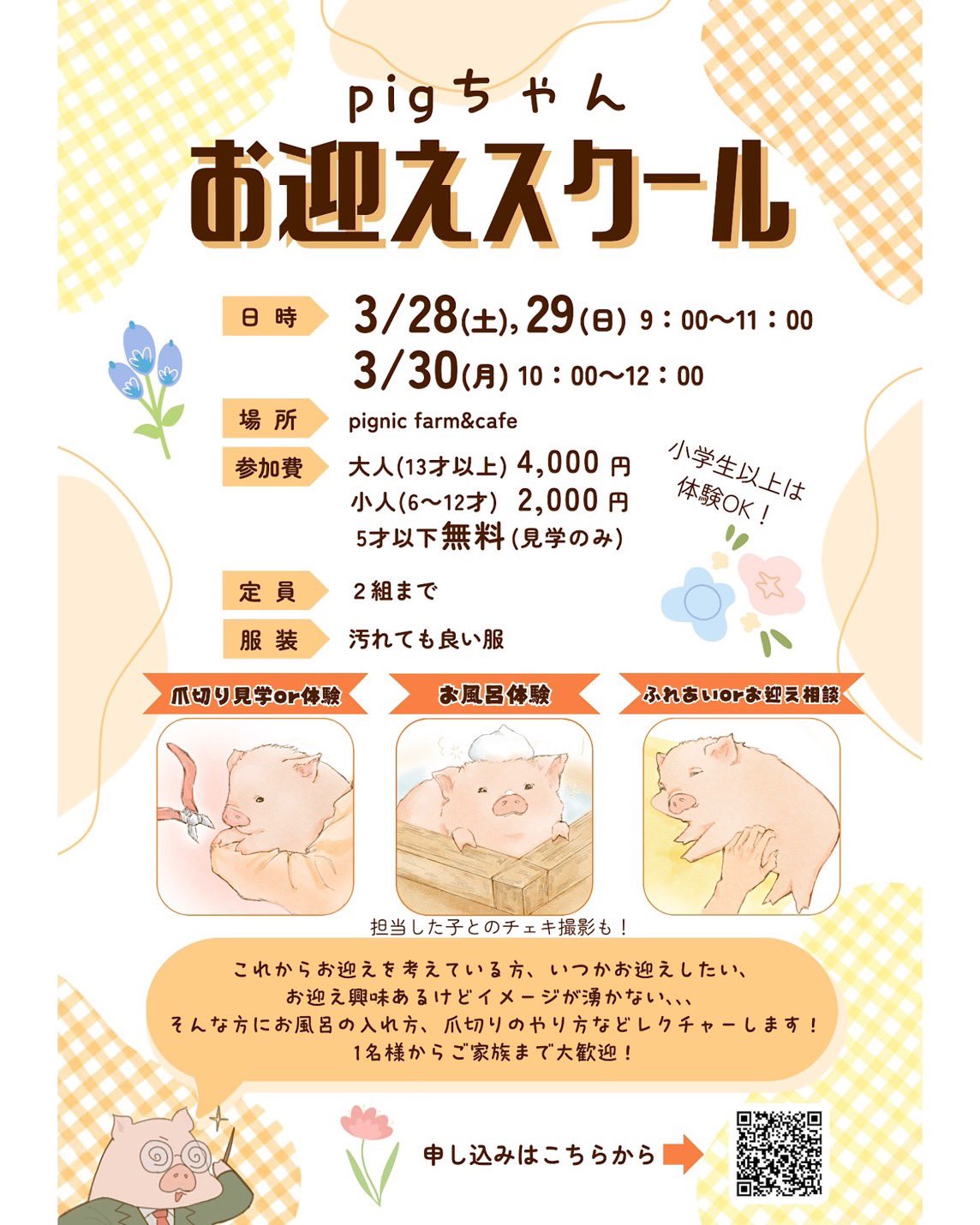 そんな方に向けて、マイクロブタの飼い方やケア方法を学べる体験イベント「pigちゃんお迎えスクール」開催します。